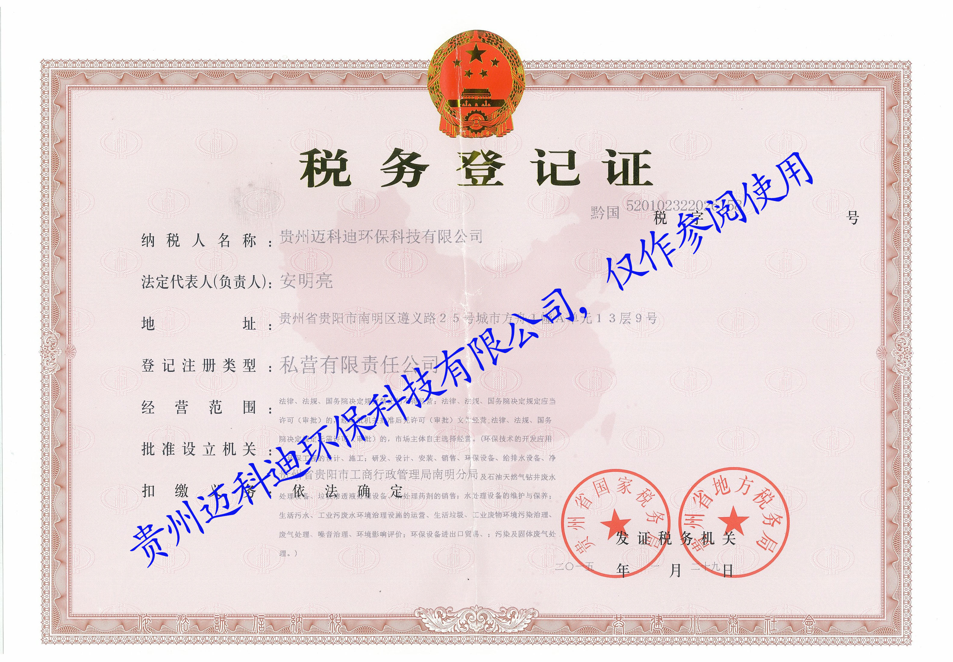 • 稅務登記證